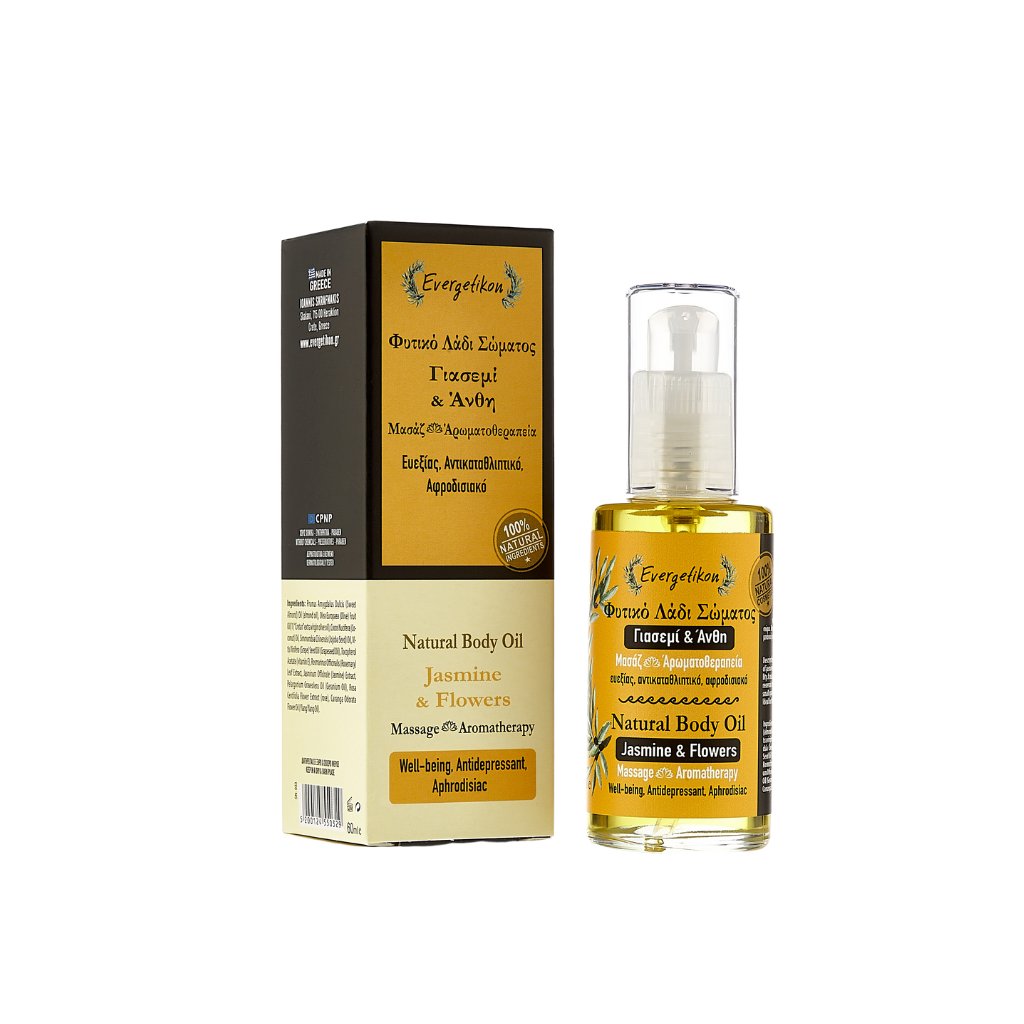 Ingredients: Prunus Amygdalus Dulcis (Sweet Almond) Oil (almond oil), Cocos Nucifera (Coconut) Oil, Olea Europaea (Olive) Fruit Oil “Cretan” extra virgin olive oil, Simmondsia Chinensis (Jojoba Seed) Oil, Vitis Vinifera (Grape) Seed Oil (Grapeseed Oil), Tocopherol Acetate (vitamin E), Rosmarinus Officinalis (Rosemary) Leaf Extract, Jasminum Officinale (Jasmine), Pelargonium Graveolens Oil (Geranium Oil ), Rosa Centifolia Flower Extract(rose), Cananga Odorata Flower Oil(Ylang Ylang Oil).