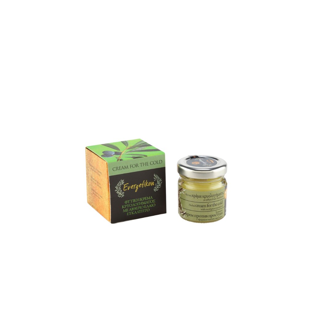 Terapeutický krém na nachlazení od značky Evergetikon pomáhá pomocí krétských bylin a esenciálního oleje z eukalyptu tišit příznaky nachlazení jako je rýma, ucpaný nos a dráždivý kašel. Povoluje ucpaný nos a pomáhá lépe dýchat.