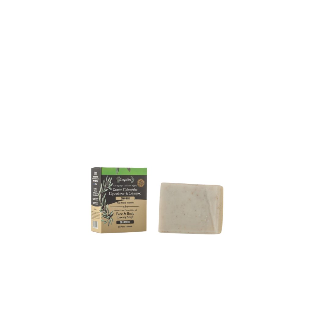 INCI: Olea Europaea (Olive) Fruit Oil Cretan extra virgin olive oil, Cocos Nucifera (Coconut) Oil, Aqua, Sodium Hydroxide, Prunus Amygdalus Dulcis (Sweet Almond) Oil, calendula officinalis flowers extract, Aloe barbadensls leaf Juice, chamomile flowers