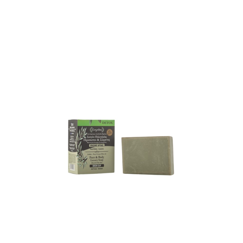 Mýdlo obsahuje extra panenský olej z olivových hájů Evergetikon, kokosový olej, mandlový olej, aloe vera, bylinné extrakty, výtažek z měsíčku a zelený jíl.