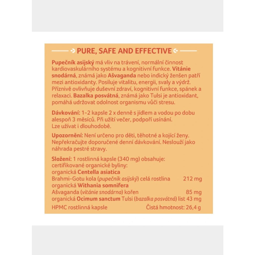 Pupečník asijský (Cantella asiatica), Vitánie snodárná (Withania somnifera, Ašvaganda), Bazalka posvátná (Ocimum sanctum)
