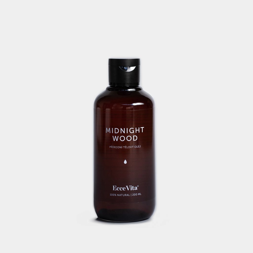 Midnight Wood je smyslný tělový a masážní olej, který pečuje o pokožku i o nervový systém. Spojuje výživnou sílu mandlového, kokosového a olivového oleje s podmanivou vůní santalu, cedru a orientálního koření.